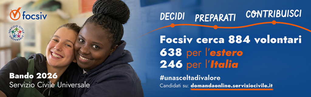FOCSIV offre ai giovani che decidono di fare servizio civile un’esperienza formativa e di crescita personale, si tratta un’occasione per sperimentarsi e per rafforzare le proprie competenze tecnico/professionali rispetto all’ambito del progetto e la conoscenza delle tematiche Nord-Sud.